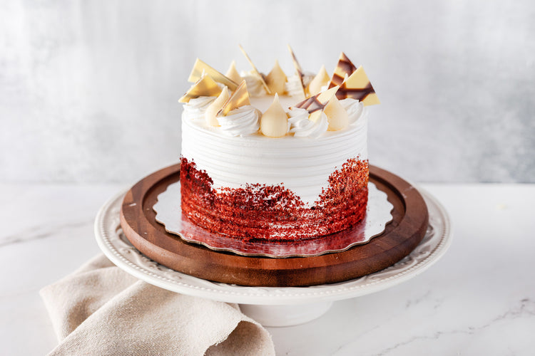 Classic red velvet cake, layered with a smooth cream cheese filling.