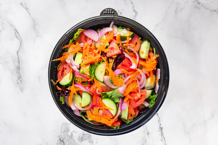 A great accompaniment to go with our pizza or sandwich platter, our garden salad is a light and refreshing addition that features fresh ingredients. It contains spring mix, lettuce, cucumber, tomato, red onion, shredded carrots and a side of Italian dressing.