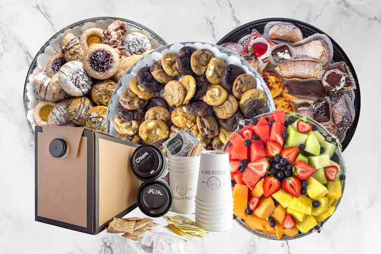 Our dolce platter is a great option when you are looking for a way to please any palette. An array of assorted pastries: mini strawberry cheesecakes, mini brownie cheesecakes, plain and chocolate chip cannolis, custard horns, cream horns, appolini (lobster tails) and mini brownies.