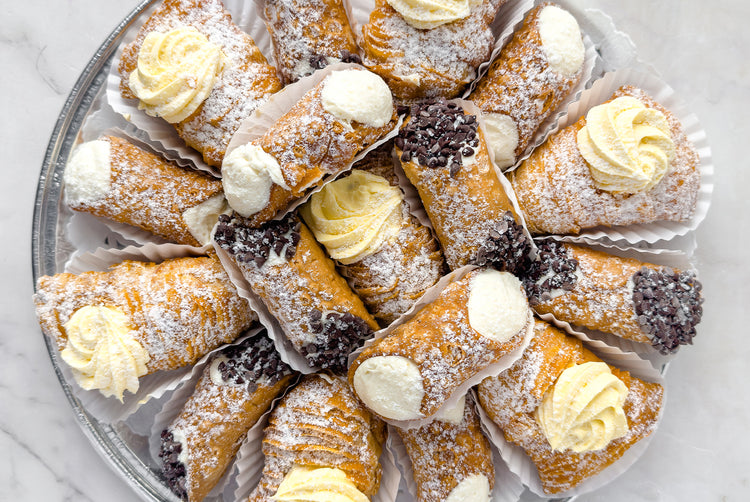 Platter includes: 7 Lobster Tails, 5 Plain Cannoli & 5 Chocolate Chip Cannoli