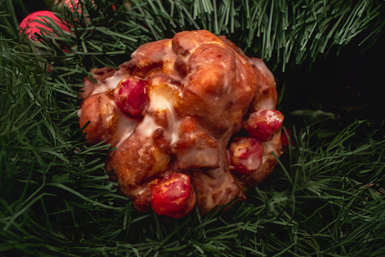 Fritter filled with cinnamon, pineapple & cherries. Glazed with plain glaze.