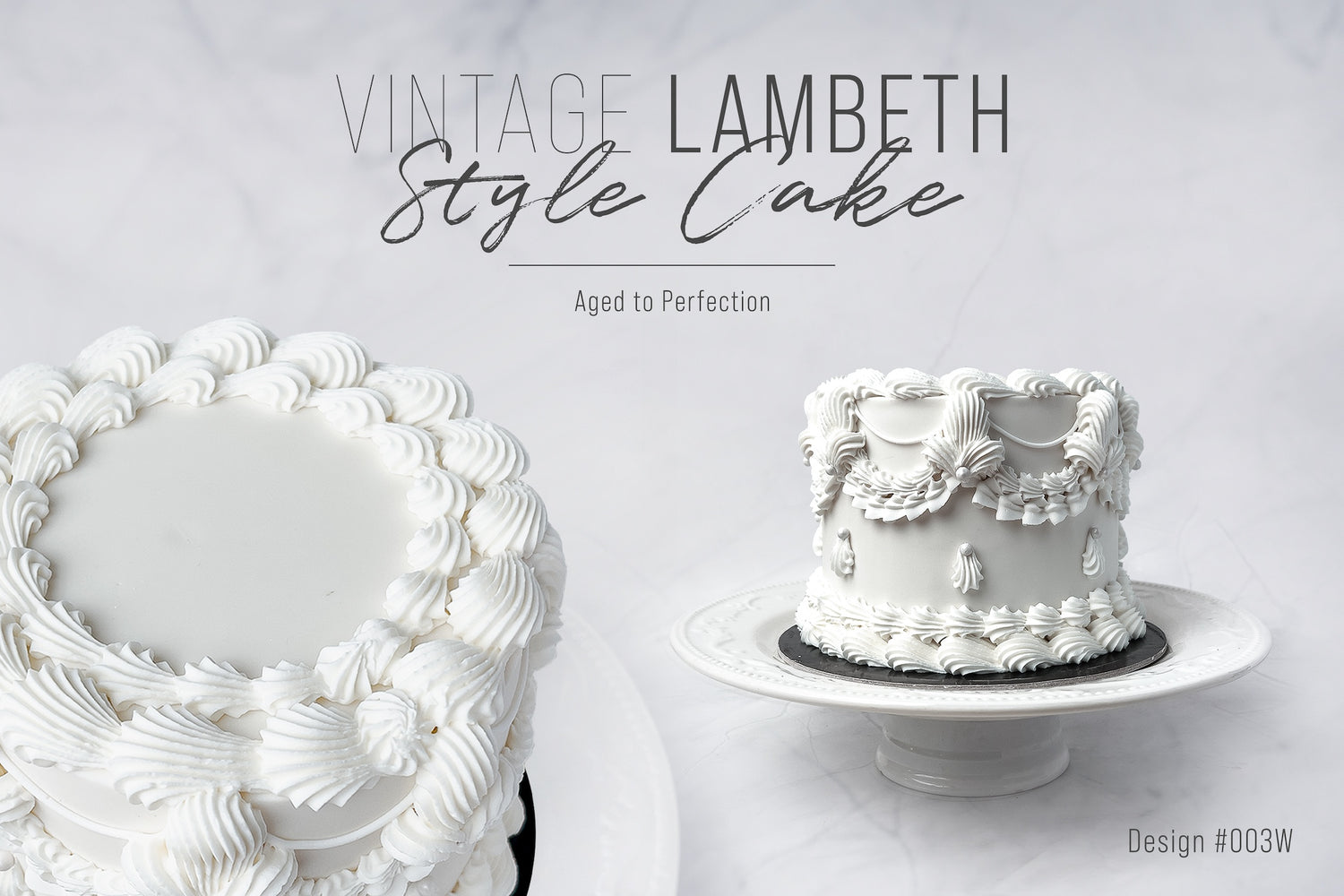Vintage is in! Delicate hand piped buttercream details, available in one solid colour or multi colour*. Perfect for any occasion from birthdays to weddings, this Lambeth style cake is sure to wow!